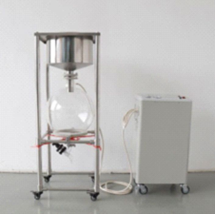 Второе, что вам нужно будет для больших объемов – хороший большой нутч-фильтр (см. Рисунок 12), лучше из полипропилена, с емкостью не менее, чем на 50 литров (лучше 100) и диаметром воронки около 50 см и полипропиленовые круги из фильтровальной ткани под размер. А если вы найдете нутч с краном между воронкой и приемной емкостью, то сможете мыть продукт, не вынимая его из воронки. Это тоже очень удобно. Также при больших объемах рекомендую раскошелится на химически стойкий вакуумный насос, типа корейского Chemker 300, необязательно мощный, базовая модель подойдет.