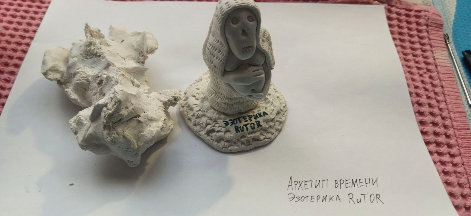 В этой фигуре запечатлен лик смерти, напоминающий череп или застывшую маску холода, однако руки бережно обхватывают живот. Это символ того, что весна не приходит извне, она вызревает внутри самой зимы. Чтобы родилось новое, старое должно не просто умереть, а стать питательной средой и созреть во чреве матери.