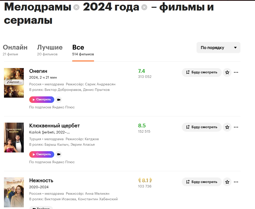 - Некоторые известные фильмы в жанре мелодрамы: