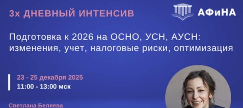 Интенсив 23-25 декабря актуален для всех, кто хочет встретить 2026 год подготовленным, понять, как изменится налоговая реальность, и заранее адаптировать процессы.